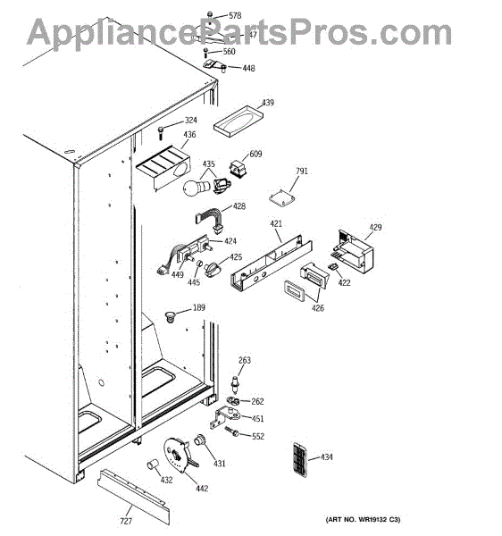 The Light Switch is an OEM replacement part for GE refrigerators. It controls the interior light, turning it on when the refrigerator door is opened and off when the door is closed. This ensures proper illumination for visibility when accessing the refrigerator's contents.