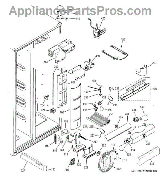 The Refrigerator Damper Assembly is an OEM part for GE refrigerators. It regulates the flow of cold air from the freezer compartment to the refrigerator, ensuring proper temperature control within the fridge.