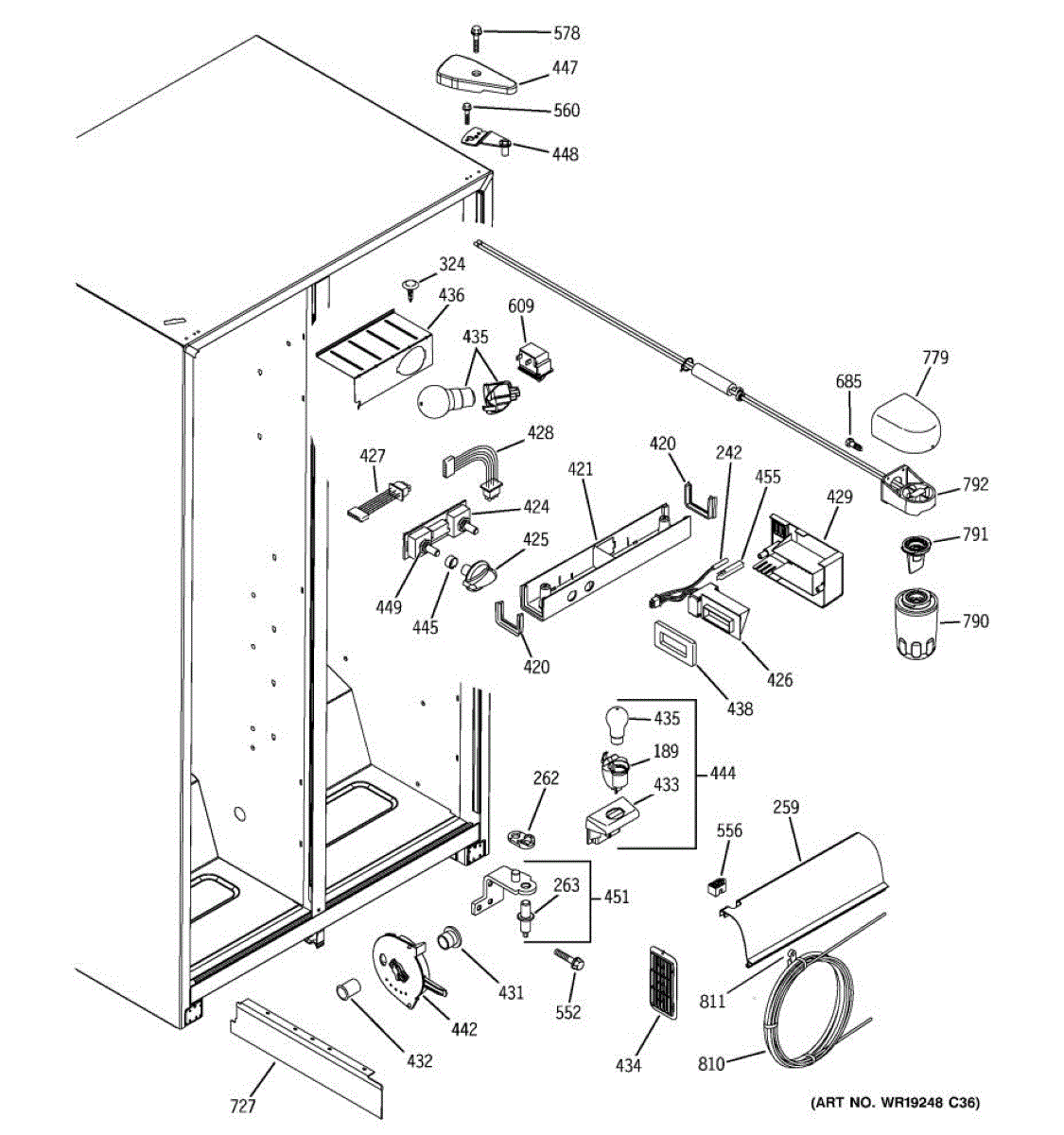 The cold water reservoir is an OEM replacement part for GE refrigerators. It serves a dual purpose, holding the supply of cold water needed for both the ice maker and water dispensing functions. This ensures that each ice cube is formed from chilled water and that cold water is always ready to be dispensed. Causes of a bad reservoir can include cracks, fractures, or leaks developing in the plastic over time due to repeated filling and draining. Mineral deposits or contamination of the water supply can also compromise performance. Symptoms of an issue include: