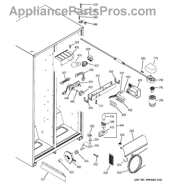 The cold water reservoir is an OEM replacement part for GE refrigerators. It serves a dual purpose, holding the supply of cold water needed for both the ice maker and water dispensing functions. This ensures that each ice cube is formed from chilled water and that cold water is always ready to be dispensed. Causes of a bad reservoir can include cracks, fractures, or leaks developing in the plastic over time due to repeated filling and draining. Mineral deposits or contamination of the water supply can also compromise performance. Symptoms of an issue include: