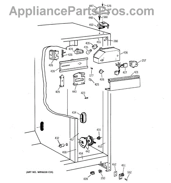 The Damper Cover Assembly is an OEM part for GE refrigerators. It covers and protects the damper, which controls the airflow between the freezer and refrigerator compartments. By regulating this airflow, the damper ensures that both sections maintain their proper temperatures, contributing to optimal food preservation.