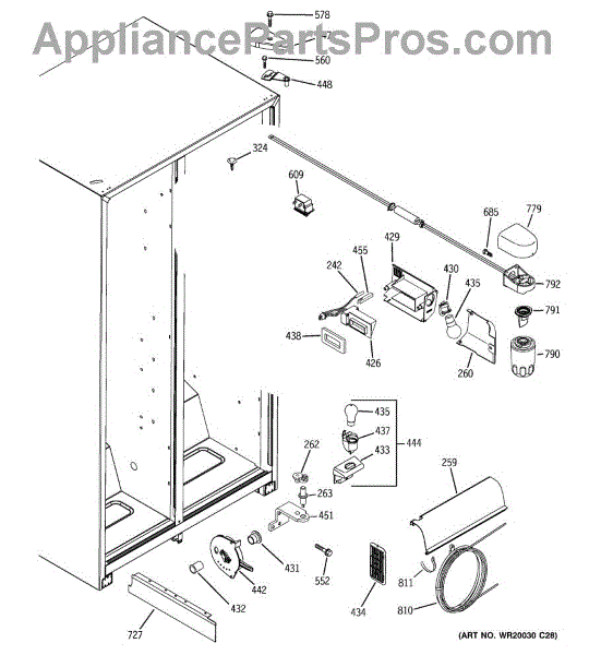 The cold water reservoir is an OEM replacement part for GE refrigerators. It serves a dual purpose, holding the supply of cold water needed for both the ice maker and water dispensing functions. This ensures that each ice cube is formed from chilled water and that cold water is always ready to be dispensed. Causes of a bad reservoir can include cracks, fractures, or leaks developing in the plastic over time due to repeated filling and draining. Mineral deposits or contamination of the water supply can also compromise performance. Symptoms of an issue include: