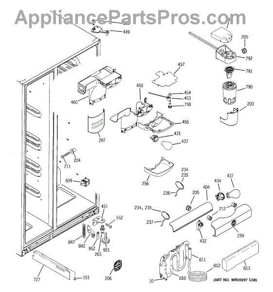 The Water Filter Housing Assembly is an OEM part for GE refrigerators. The water filter head holds the water filter and connects the water lines to the water filter. Includes the filter head and water lines. Causes can involve cracks, deformities or wear to sealing surfaces over time. Accidental dents or impacts may compromise housing integrity. Symptoms of a bad housing assembly include: