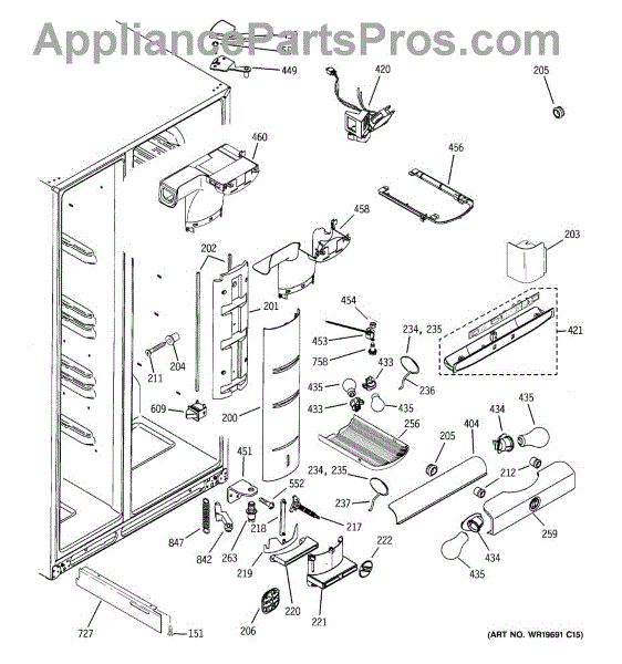 The Refrigerator Damper Assembly is an OEM part for GE refrigerators. It regulates the flow of cold air from the freezer compartment to the refrigerator, ensuring proper temperature control within the fridge.