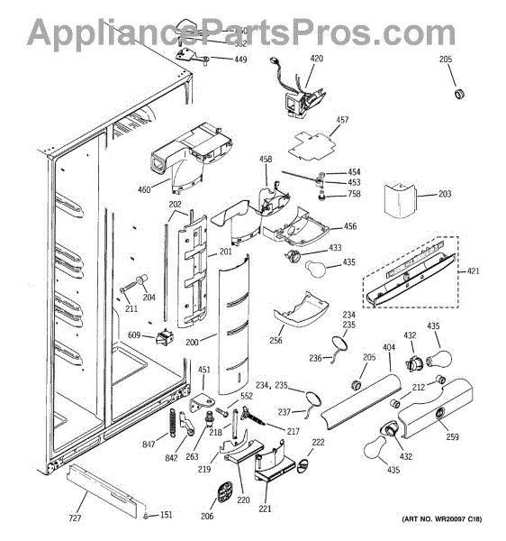 The Refrigerator Damper Assembly is an OEM part for GE refrigerators. It regulates the flow of cold air from the freezer compartment to the refrigerator, ensuring proper temperature control within the fridge.