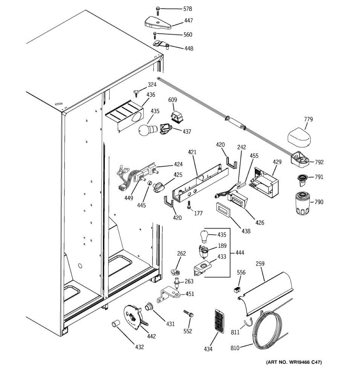The cold water reservoir is an OEM replacement part for GE refrigerators. It serves a dual purpose, holding the supply of cold water needed for both the ice maker and water dispensing functions. This ensures that each ice cube is formed from chilled water and that cold water is always ready to be dispensed. Causes of a bad reservoir can include cracks, fractures, or leaks developing in the plastic over time due to repeated filling and draining. Mineral deposits or contamination of the water supply can also compromise performance. Symptoms of an issue include: