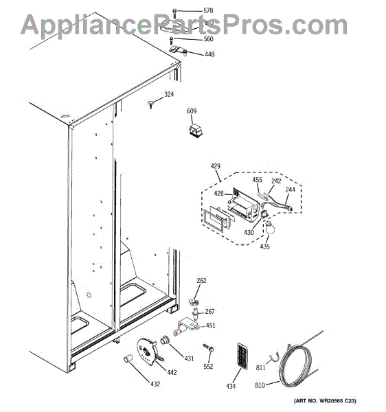 The Damper Cover Assembly is an OEM part for GE refrigerators. It covers and protects the damper, which controls the airflow between the freezer and refrigerator compartments. By regulating this airflow, the damper ensures that both sections maintain their proper temperatures, contributing to optimal food preservation.