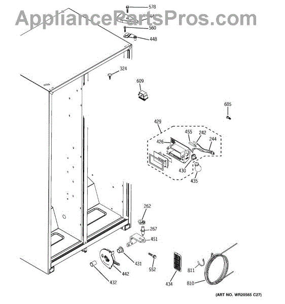 The Damper Cover Assembly is an OEM part for GE refrigerators. It covers and protects the damper, which controls the airflow between the freezer and refrigerator compartments. By regulating this airflow, the damper ensures that both sections maintain their proper temperatures, contributing to optimal food preservation.