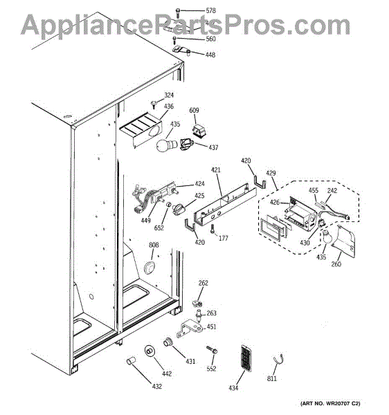 This assembly meters cold air from the freezer into the fresh-food compartment and provides temperature feedback to the controls. Replacing a failing unit restores proper airflow and more stable, even cooling performance.