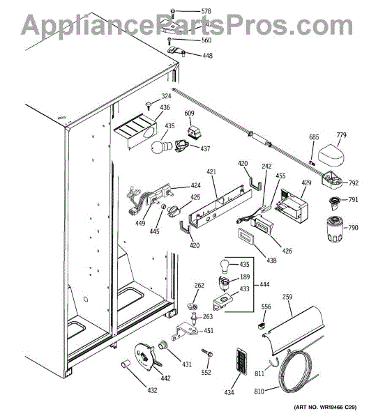 The cold water reservoir is an OEM replacement part for GE refrigerators. It serves a dual purpose, holding the supply of cold water needed for both the ice maker and water dispensing functions. This ensures that each ice cube is formed from chilled water and that cold water is always ready to be dispensed. Causes of a bad reservoir can include cracks, fractures, or leaks developing in the plastic over time due to repeated filling and draining. Mineral deposits or contamination of the water supply can also compromise performance. Symptoms of an issue include: