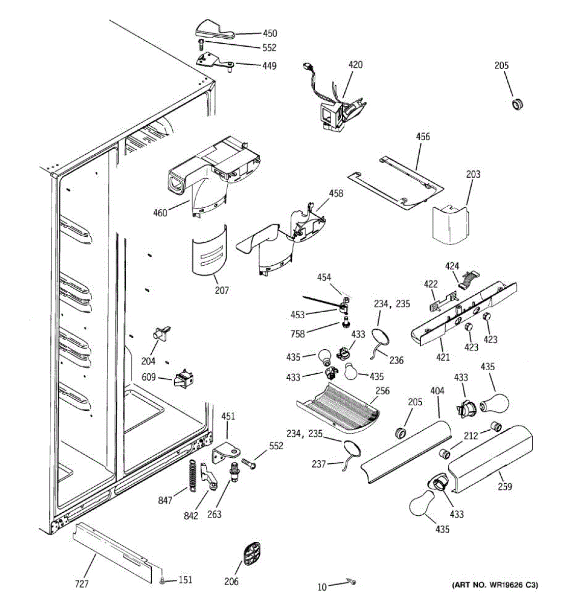 Fresh food side. For the same part in black, purchase WR11X10009.