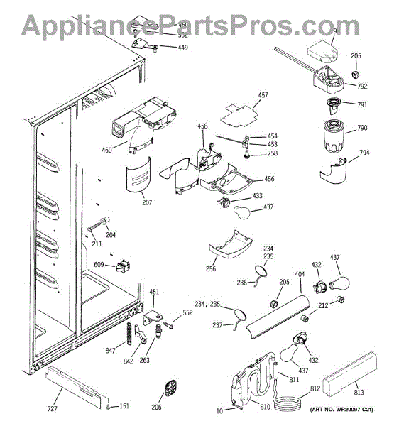 The Water Filter Housing Assembly is an OEM part for GE refrigerators. The water filter head holds the water filter and connects the water lines to the water filter. Includes the filter head and water lines. Causes can involve cracks, deformities or wear to sealing surfaces over time. Accidental dents or impacts may compromise housing integrity. Symptoms of a bad housing assembly include:
