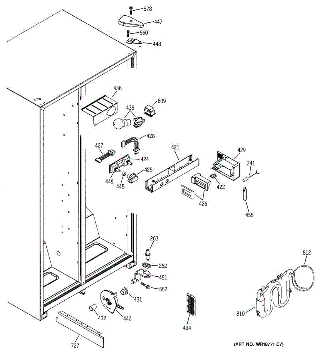The Light Switch is an OEM replacement part for GE refrigerators. It controls the interior light, turning it on when the refrigerator door is opened and off when the door is closed. This ensures proper illumination for visibility when accessing the refrigerator's contents.
