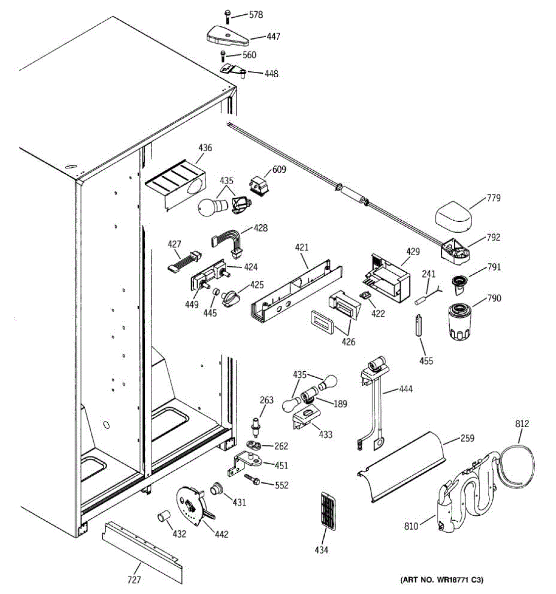 This assembly combines the refrigerator's internal water reservoir (tank) with its attached tubing to deliver chilled water to the dispenser. Replace a cracked or leaking tank to restore proper water flow and prevent leaks inside the fresh food compartment. What it does: