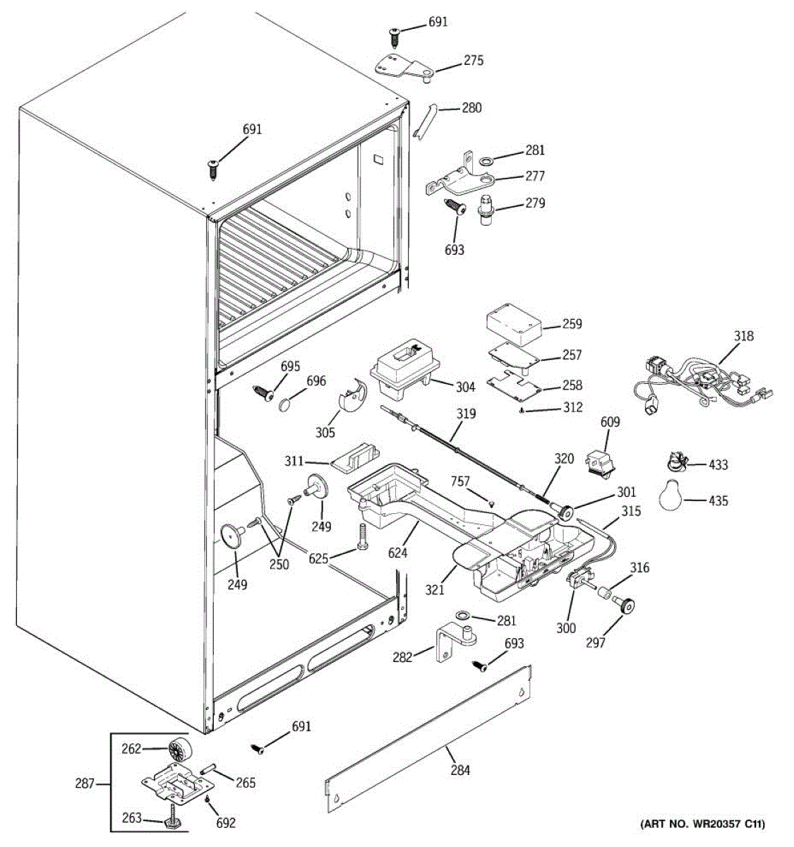 Control housing insert assembly for refrigerator. Replaces cracked, broken, or missing control panel housing. Installs on front control area.
