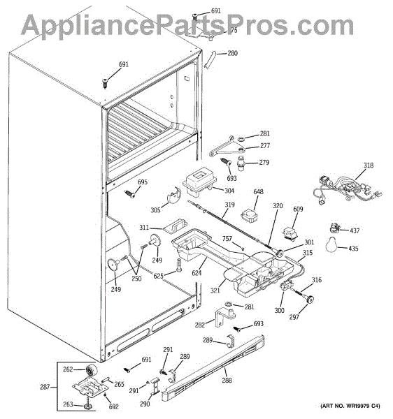 This leveling leg supports and stabilizes the refrigerator cabinet. Adjusting it keeps the unit level so doors align and seal correctly, helping reduce vibration and noise for smoother, more reliable performance.