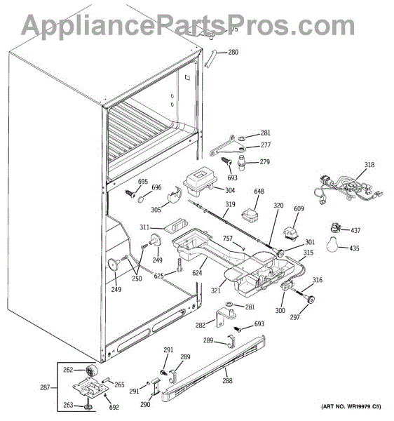 This leveling leg supports and stabilizes the refrigerator cabinet. Adjusting it keeps the unit level so doors align and seal correctly, helping reduce vibration and noise for smoother, more reliable performance.