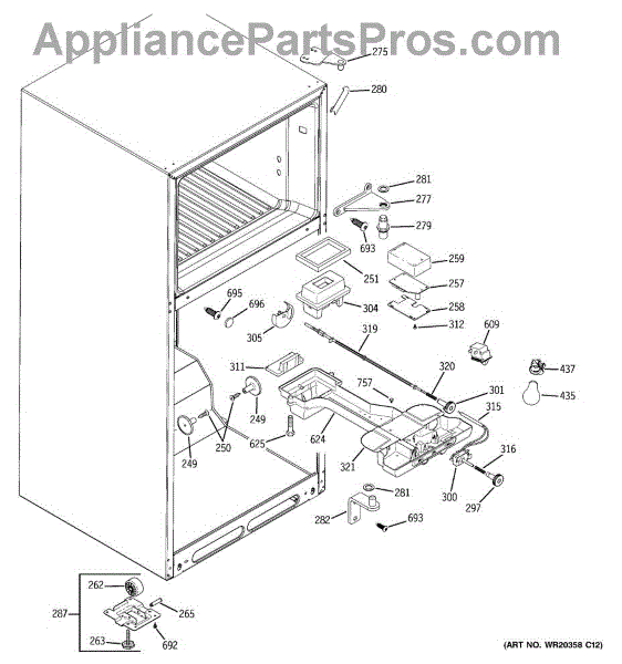 This leveling leg supports and stabilizes the refrigerator cabinet. Adjusting it keeps the unit level so doors align and seal correctly, helping reduce vibration and noise for smoother, more reliable performance.