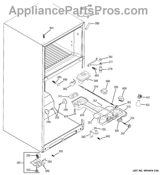 This leveling leg supports and stabilizes the refrigerator cabinet. Adjusting it keeps the unit level so doors align and seal correctly, helping reduce vibration and noise for smoother, more reliable performance.