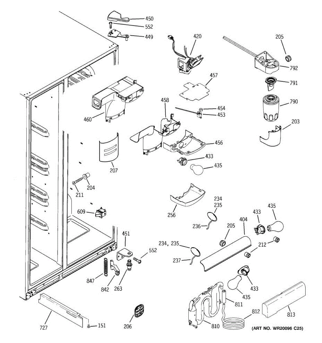 This air diverter is a duct component that directs and balances airflow inside the refrigerator. Replacing a cracked or missing diverter helps restore proper cooling performance and reduce frost or condensation around air passages.