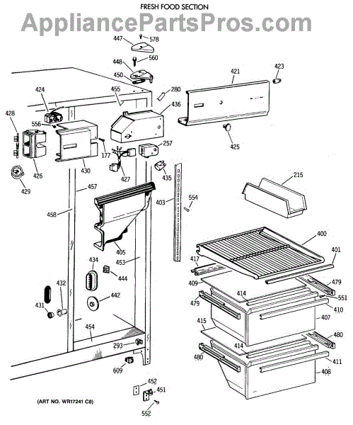 Parts for Ge MRSC20BAXAWH: 03 - Fresh Food Section Parts