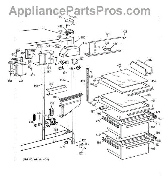 Parts for Ge MSG20GABBWW: 03 - Fresh Food Section Parts