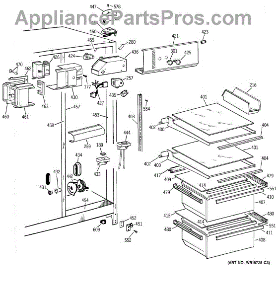 The Light Switch is an OEM replacement part for GE refrigerators. It controls the interior light, turning it on when the refrigerator door is opened and off when the door is closed. This ensures proper illumination for visibility when accessing the refrigerator's contents.