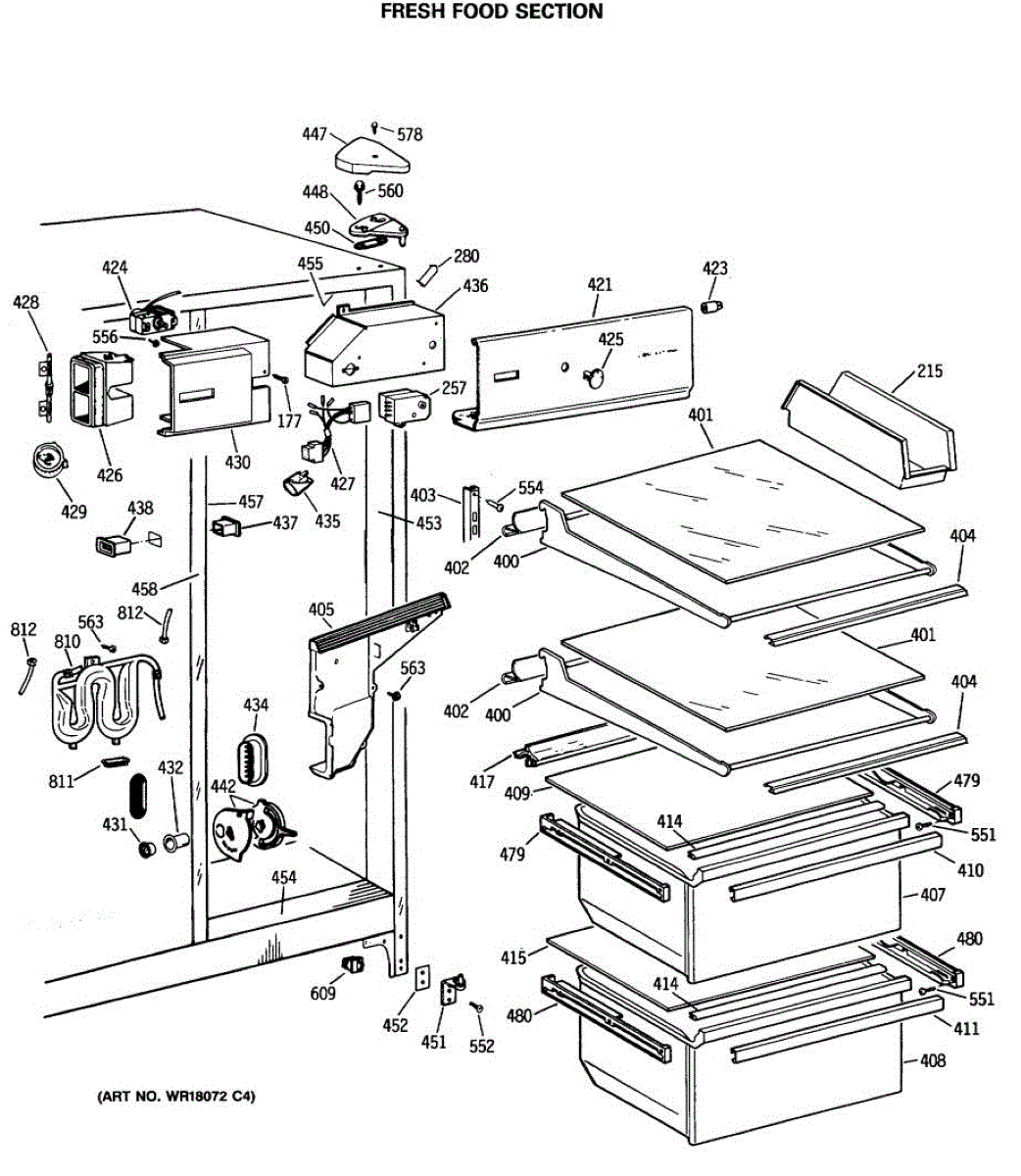 Parts for Ge MSH24GRTAWW: 03 - Fresh Food Section Parts