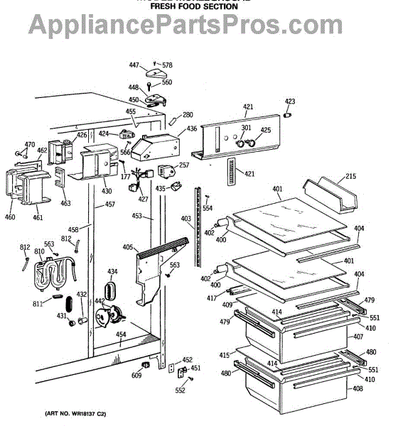 Causes for a malfunctioning Crisper Drawer Slide can include wear and tear from regular use, the accumulation of debris obstructing the slide's path, or damage incurred from overloading the drawer. This GE replacement part is also compatible with Hotpoint, RCA, and some Kenmore models. For matching left-hand side order WR72X209.
