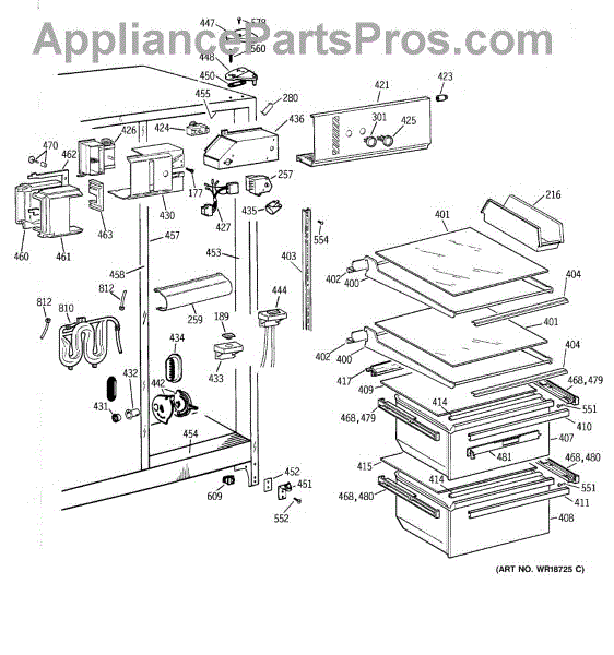 The Slide Assembly RH is an OEM replacement part for GE side-by-side refrigerators. As a replaceable sub-assembly, it restores smooth extension of plastic vegetable/multi-purpose slides on the right interior. The slide measures approximately 16 inches.