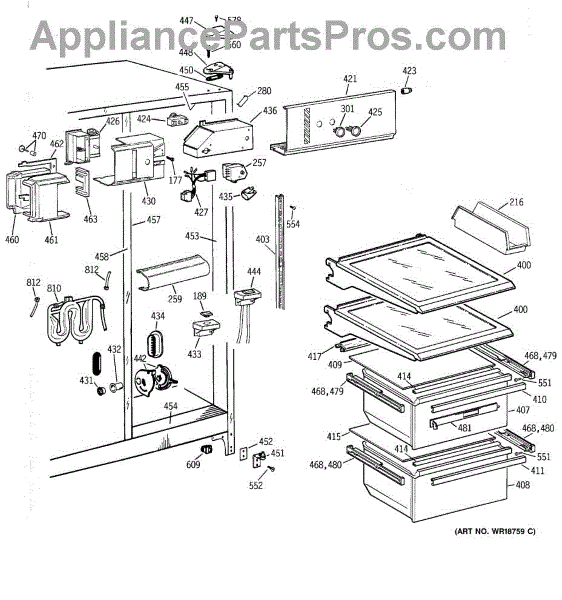 The Slide Assembly RH is an OEM replacement part for GE side-by-side refrigerators. As a replaceable sub-assembly, it restores smooth extension of plastic vegetable/multi-purpose slides on the right interior. The slide measures approximately 16 inches.