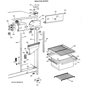 The Drawer Slide Assembly is an OEM part for GE refrigerators. It allows for smooth and easy movement of the refrigerator drawers, ensuring convenient access to stored food items. It provides the necessary support and stability to hold the weight of the contents within the drawers. The slide measures approximately 16 1/4 inches long.