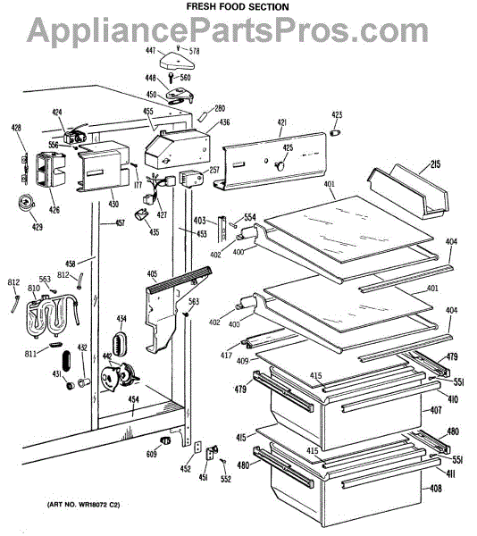 Parts for Ge MSX20GWSAWH: 03 - Fresh Food Section Parts