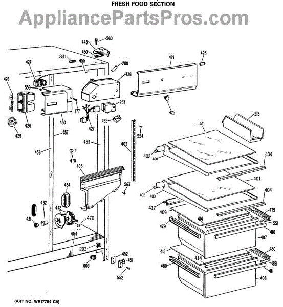 Causes for a malfunctioning Crisper Drawer Slide can include wear and tear from regular use, the accumulation of debris obstructing the slide's path, or damage incurred from overloading the drawer. This GE replacement part is also compatible with Hotpoint, RCA, and some Kenmore models. For matching left-hand side order WR72X209.