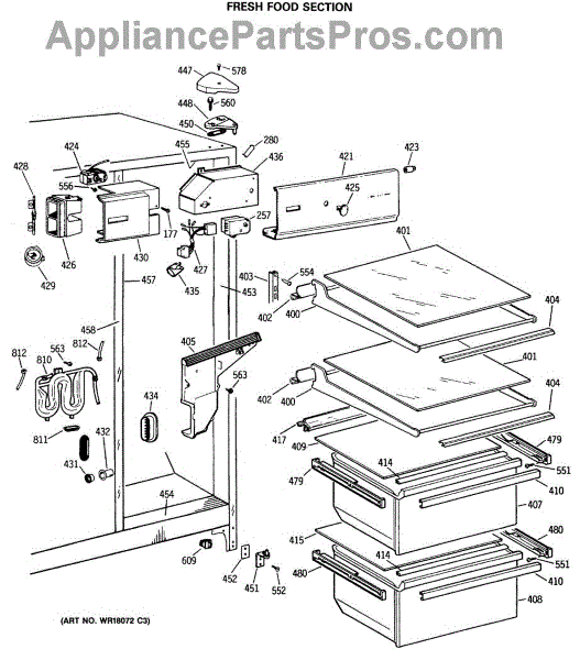 Parts for Ge MSX22KWSMWH: 03 - Fresh Food Section Parts