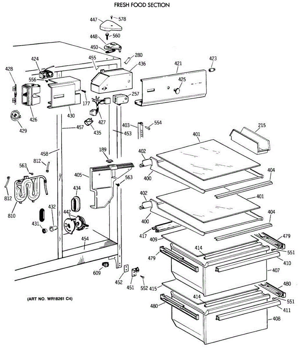 This left-hand drawer slide assembly mounts inside the refrigerator's fresh food section. It supports the shelf/cover and guides the drawer on its track, restoring smooth operation and proper alignment when the original rail is cracked or worn.