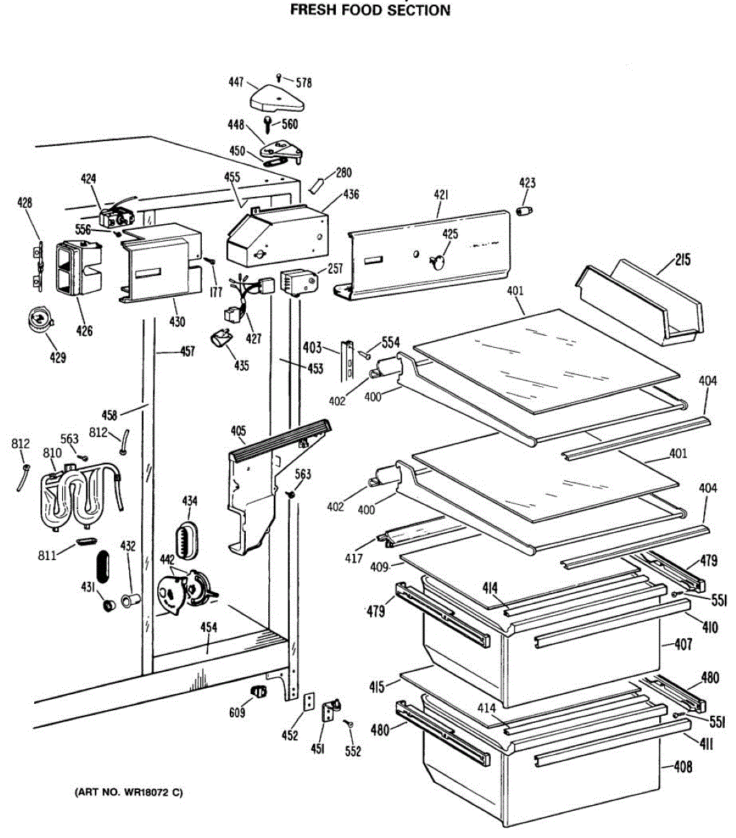 Parts for Ge MSX24GRSAWH: 03 - Fresh Food Section Parts