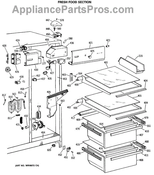 Parts for Ge MSX24GRSMWH: 03 - Fresh Food Section Parts