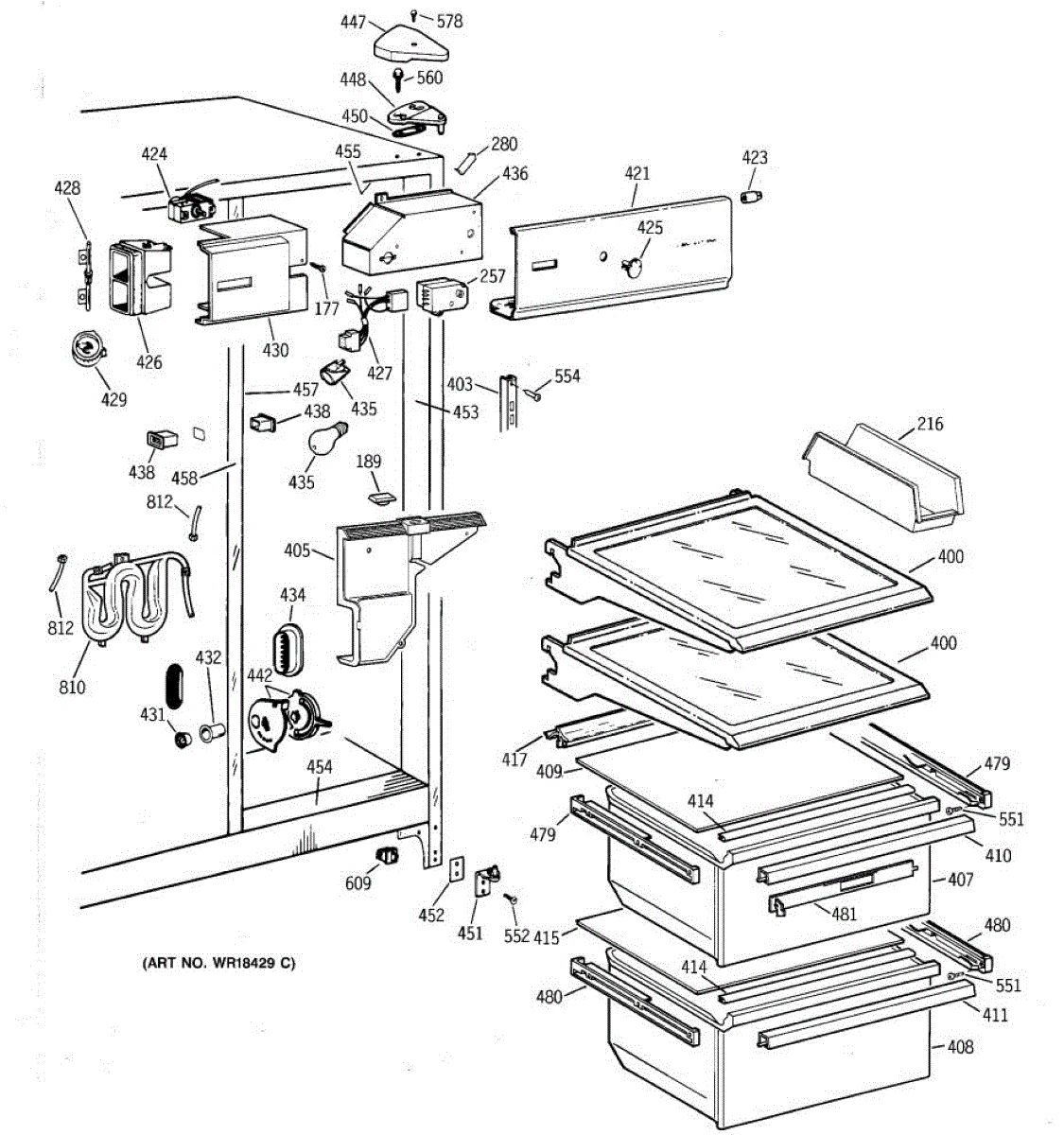 Parts for Ge MSX25DRZBAA: 03 - Fresh Food Section Parts
