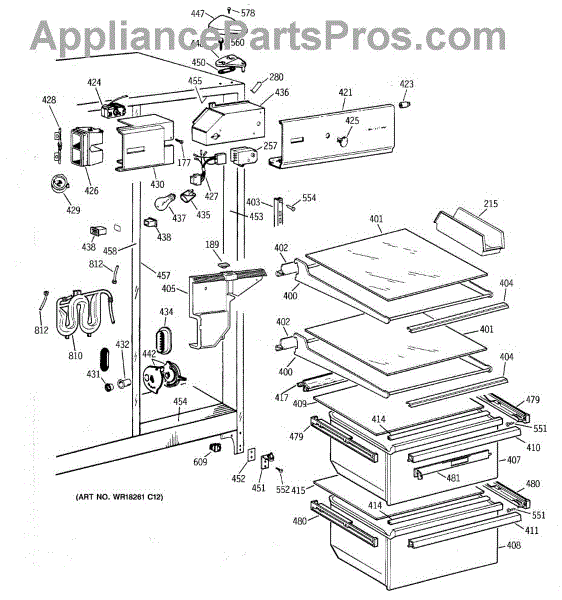 Parts for Ge MSX25GRYDWW: 03 - Fresh Food Section Parts