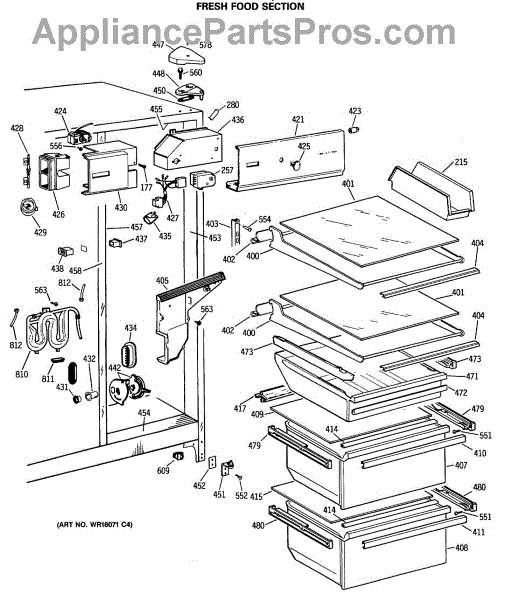 Parts for Ge MSX27DRTAWW: 04 - Fresh Food Section Parts