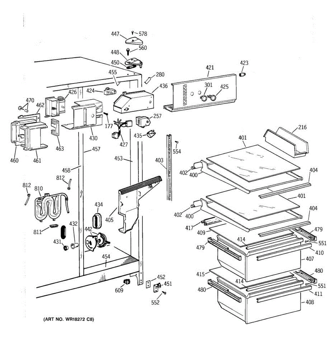The Drawer Slide Assembly is an OEM part for GE refrigerators. It allows for smooth and easy movement of the refrigerator drawers, ensuring convenient access to stored food items. It provides the necessary support and stability to hold the weight of the contents within the drawers. The slide measures approximately 16 1/4 inches long.