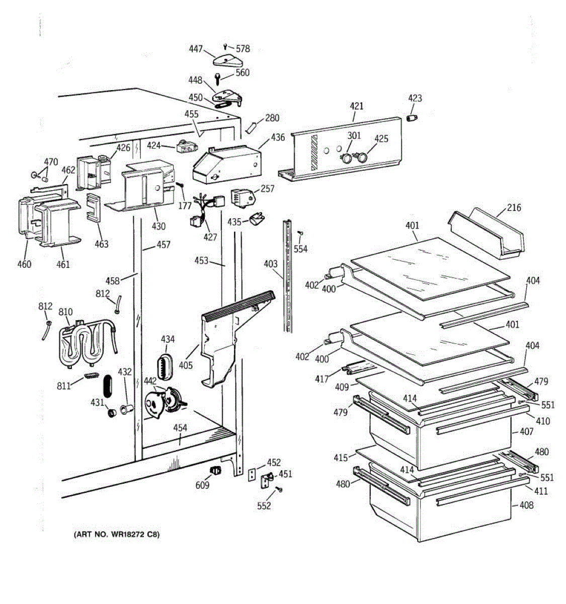 The Drawer Slide Assembly is an OEM part for GE refrigerators. It allows for smooth and easy movement of the refrigerator drawers, ensuring convenient access to stored food items. It provides the necessary support and stability to hold the weight of the contents within the drawers. The slide measures approximately 16 1/4 inches long.