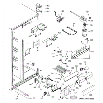 This air diverter is a duct component that directs and balances airflow inside the refrigerator. Replacing a cracked or missing diverter helps restore proper cooling performance and reduce frost or condensation around air passages.