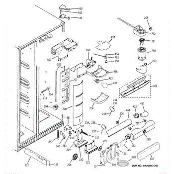This air diverter is a duct component that directs and balances airflow inside the refrigerator. Replacing a cracked or missing diverter helps restore proper cooling performance and reduce frost or condensation around air passages.