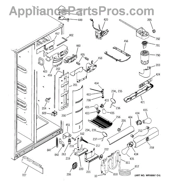 The Door Closure Spring is an OEM replacement part for GE refrigerators. It provides balanced tension to assist the door hinges and latch mechanism in securely closing the refrigerator door. The spring helps the door shut fully while preventing it from slamming closed abruptly.