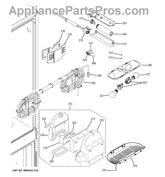 The Water Filter Housing and Tube Assembly is an OEM part for GE refrigerators. This assembly is responsible for securely holding the water filter in place while directing water through the filter and into the dispenser or ice maker. Approximate dimensions: 18" x 14.7" x 3.3"