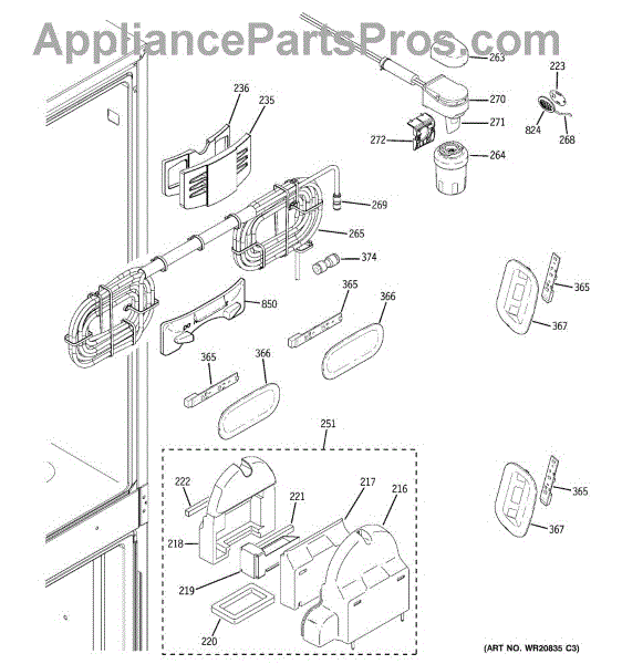 The GE Refrigerator Water Filter Housing and Tube Assembly is an OEM part for GE refrigerators. It houses the water filter and connects it to the water supply line, ensuring clean and filtered water is dispensed.
