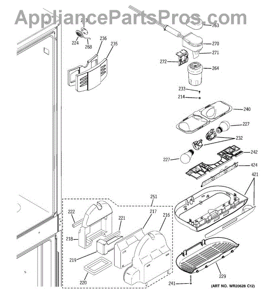 The GE Refrigerator Water Filter Housing and Tube Assembly is an OEM part for GE refrigerators. It houses the water filter and connects it to the water supply line, ensuring clean and filtered water is dispensed.