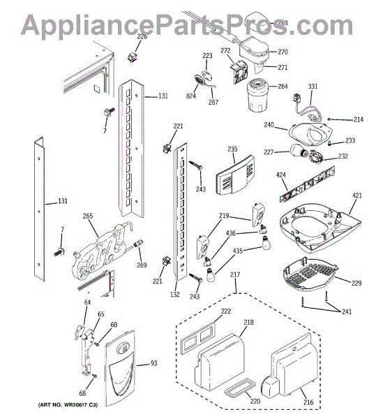 The GE Refrigerator Water Filter Housing and Tube Assembly is an OEM part for GE refrigerators. It houses the water filter and connects it to the water supply line, ensuring clean and filtered water is dispensed.